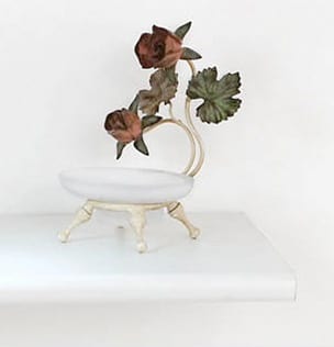 Portasapone da appoggio, con decorazioni floreali in ferro battuto.