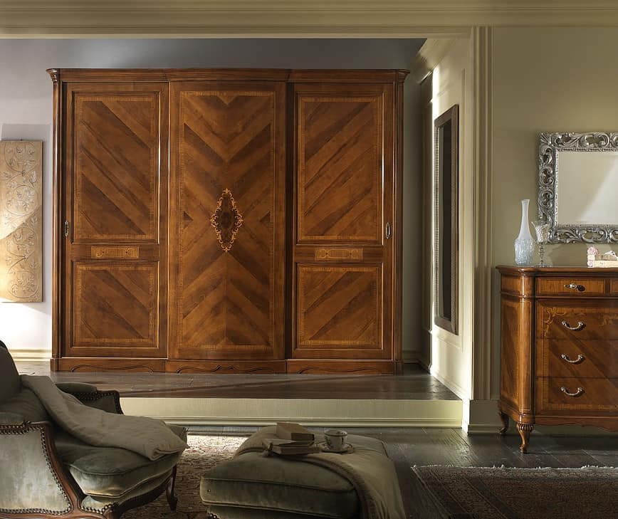 Armadio in noce con 3 ante scorrevoli, impiallacciato