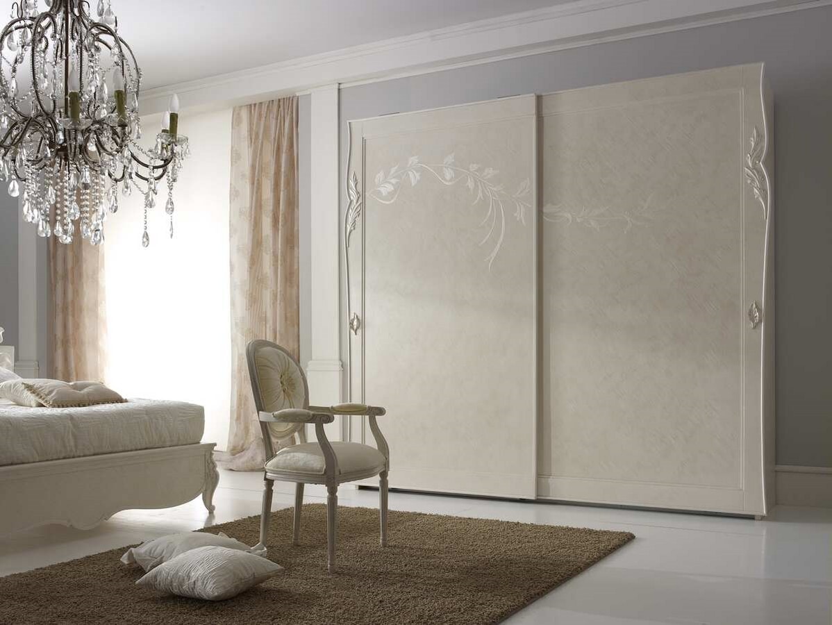 Armadio con 2 ante scorrevoli. Struttura in legno, con decorazioni artigianali.