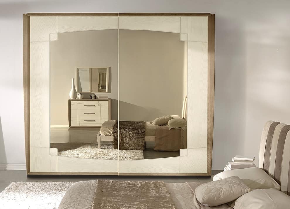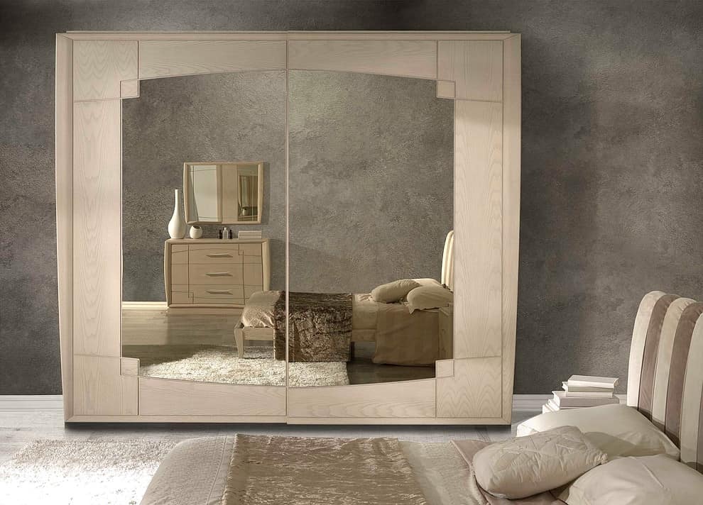 Armadio in frassino, con ante scorrevoli e specchio bronzato
