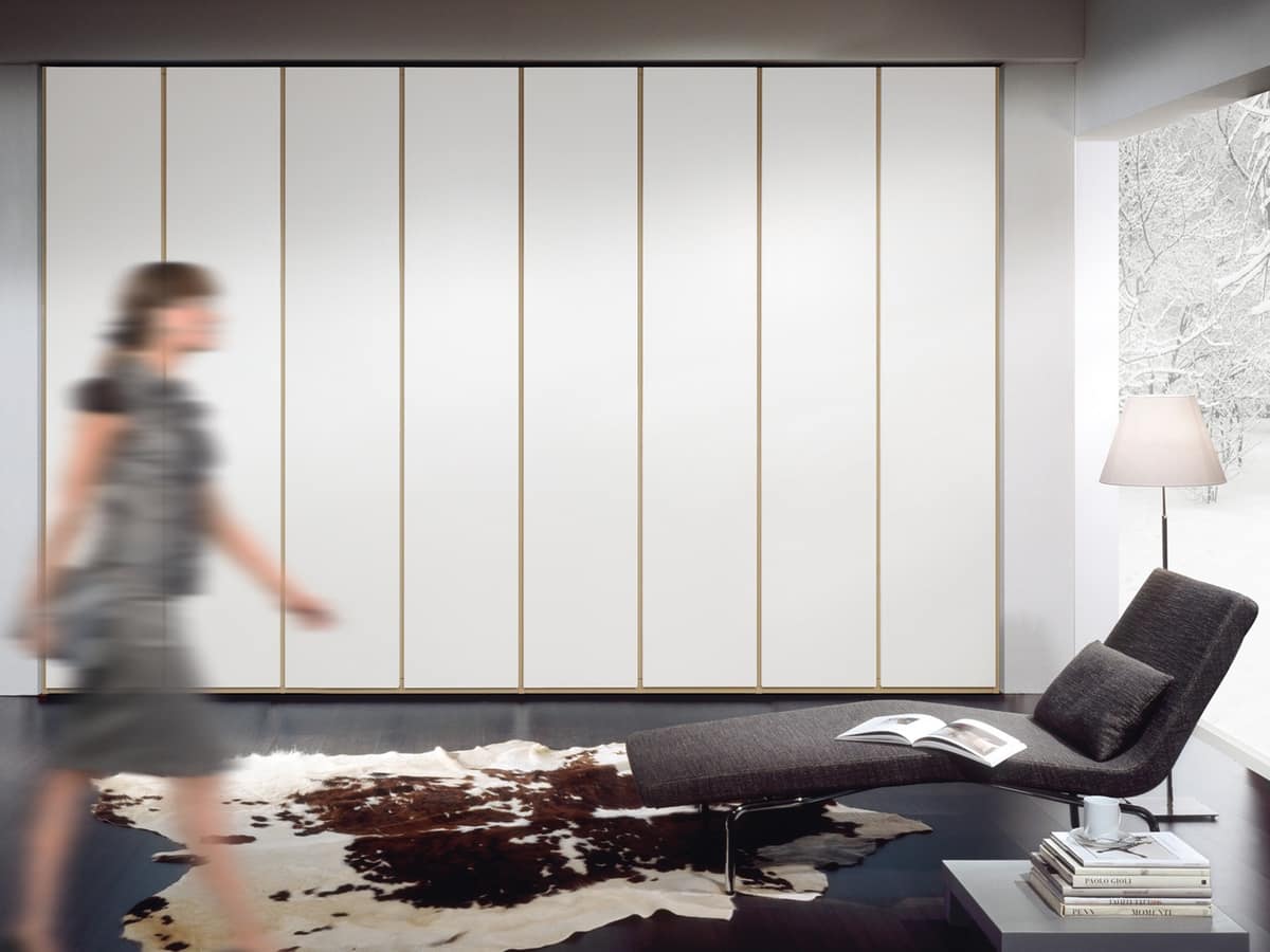 La finitura delle ante è disponibile in essenza, laccato opaco liscio, laccato opaco poro aperto, laccato lucido spazzolato, o con soluzioni a vetri-specchi applicati. L’eleganza dei vetri o del laccato lucido genera un’identità raffinata, moderna e design di alto livello.