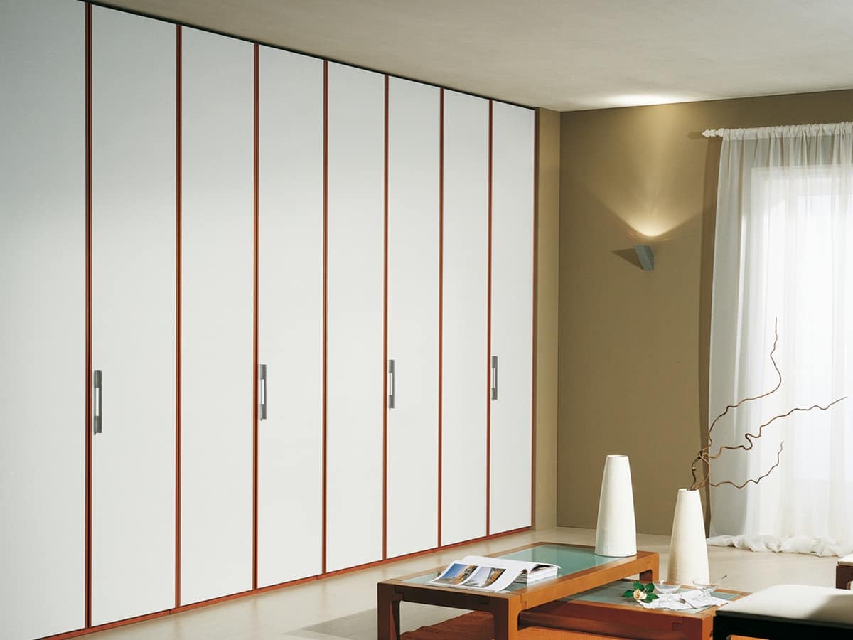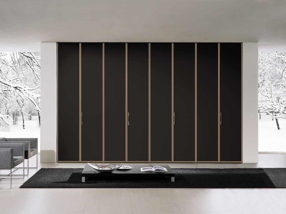 Le ante Paro mostrano estetica lineare e pulita, con profili 2 verticali in tono contrasto cromatico, con molti tipi di maniglie perfette per ogni situazione: raffinate, ergonomiche e resistenti, sporgenti, incassate, in metallo, in legno, per zona giorno, notte, camerette …
