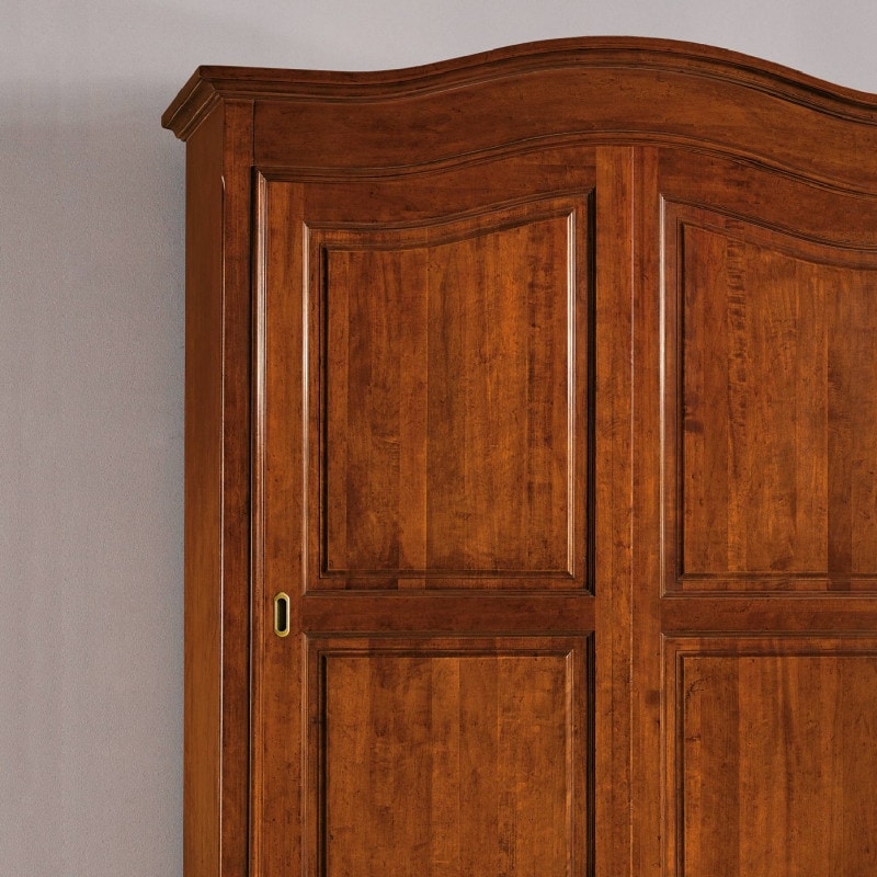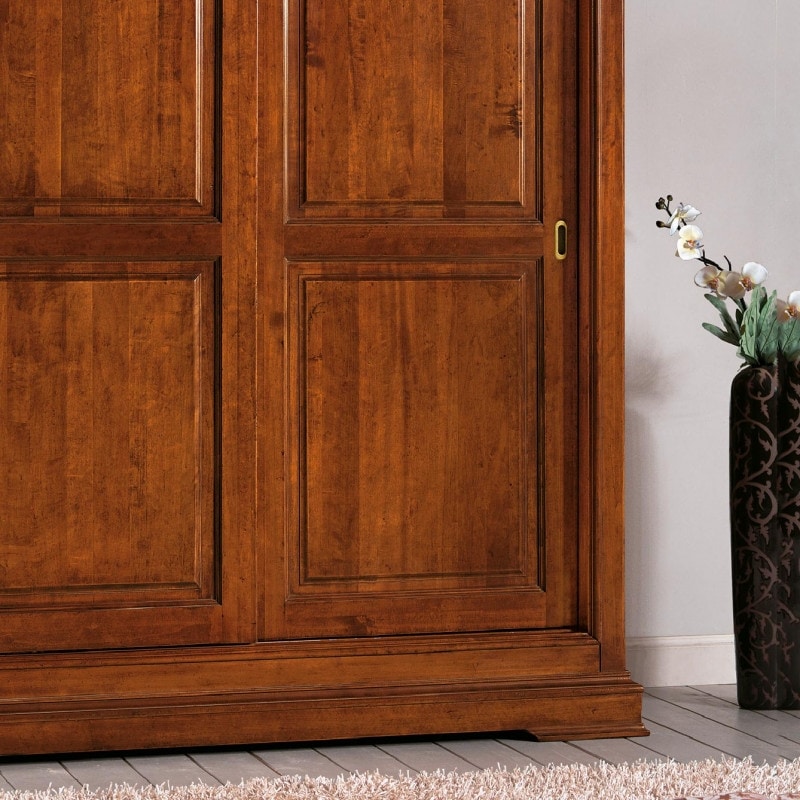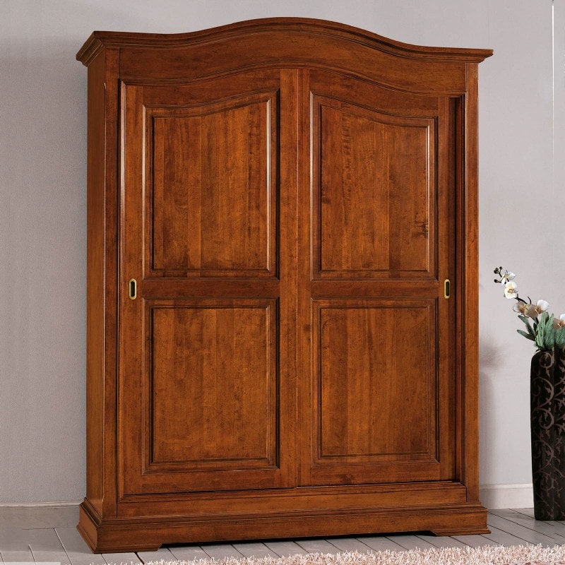 Richiedi prezzi Prodotti similiArmadio in legno con due ante scorrevoli. Mobile diviso in due vani, ante con telaio a due riquadri arricchiti da bugne. Cimasa sagomata e basamento lineari arricchiti da cornici con più sagome. Le forme semplici e rigorose di questo mobile ne permettono l'inserimento in arredamenti dal gusto classico. Da valutare l'utilizzo di colori tenui come il bianco o l'avorio per rendere l'immagine più fresca ed attuale.