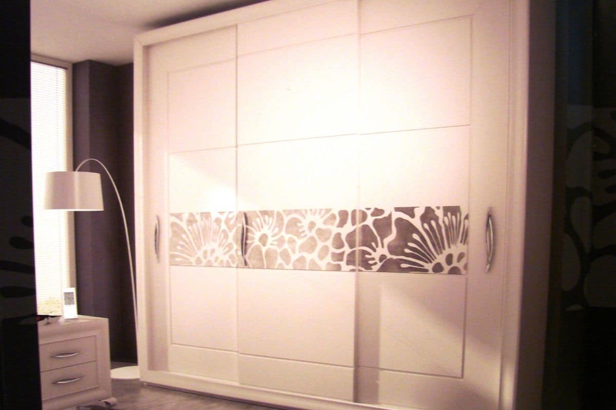 Armadio 3 anti scorrevoli laccato con vetri serigrafati.