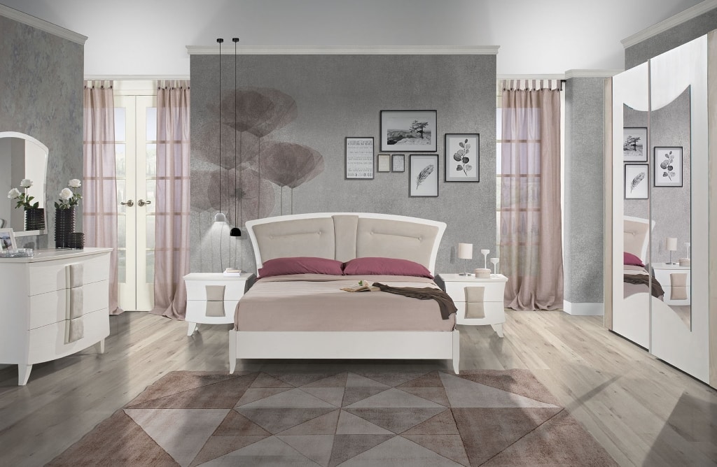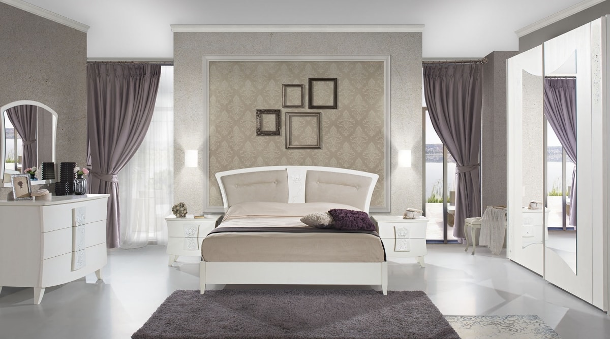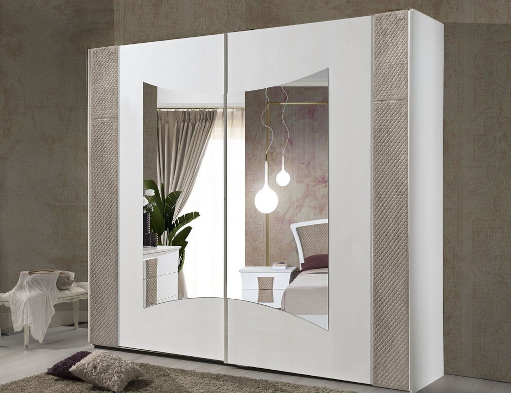 Armadio modello Mary 2 ante scorrevoli, frassino bianco, decorato a mano, con specchi . Chiusura ante ammortizzata.