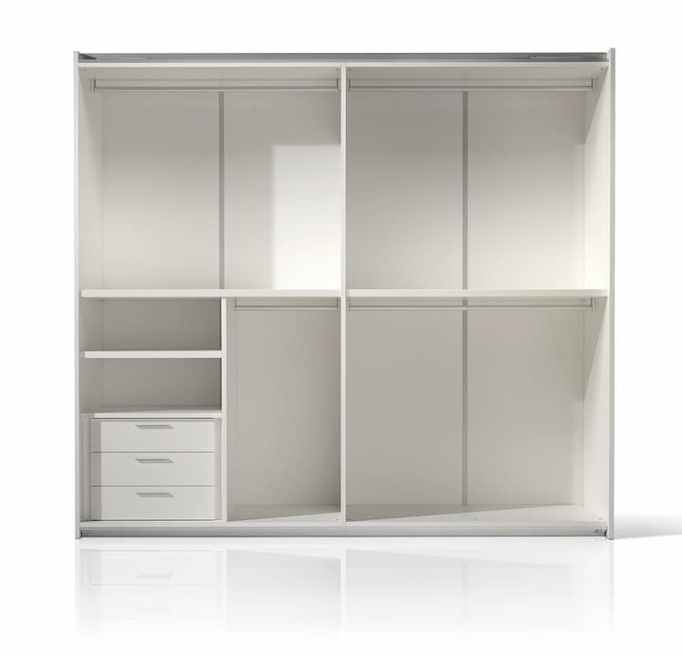 Richiedi prezzi Prodotti similiArmadio con 2 ante scorrevoli, con decori in pelle bianca ricamati, dotato di cassettiera interna.