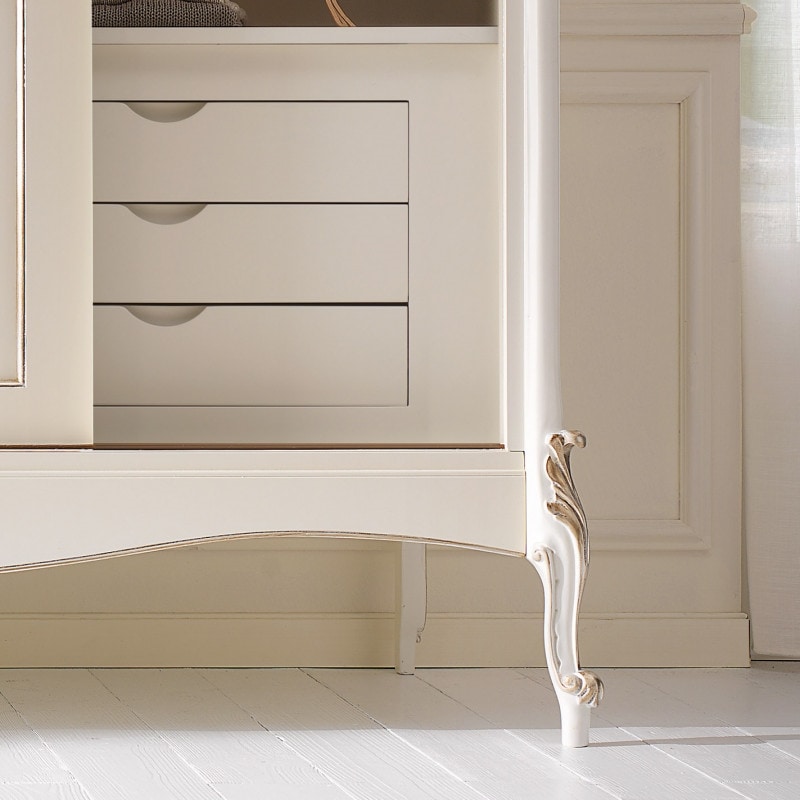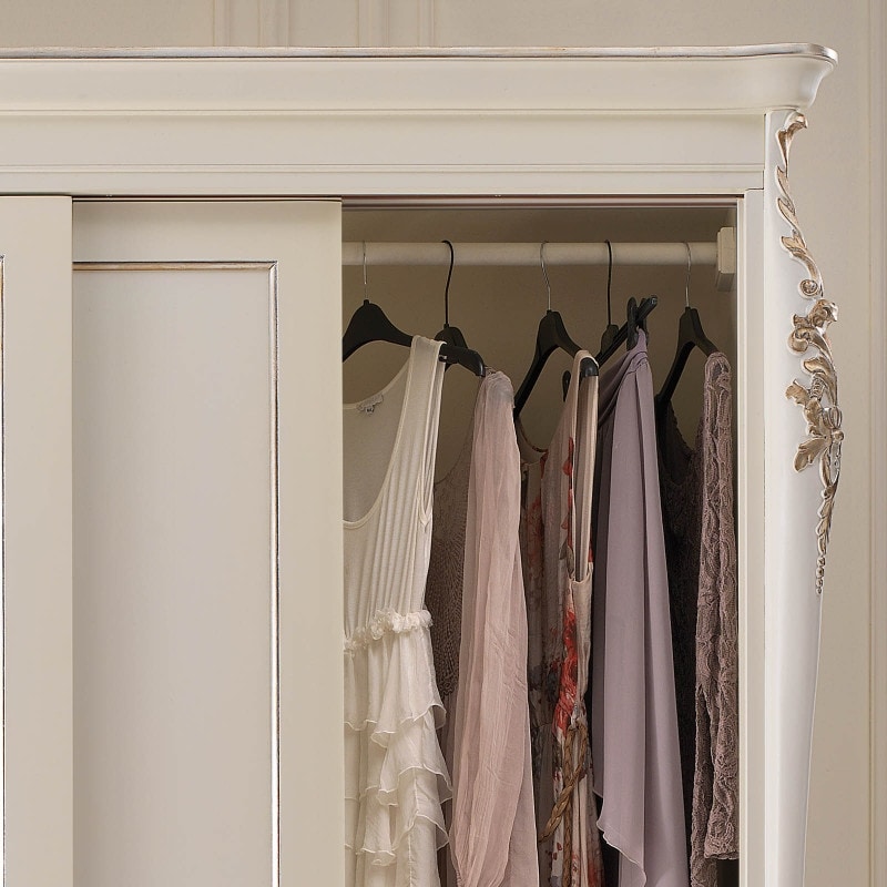 Richiedi prezzi Prodotti similiElegante e raffinato armadio con 3 ante scorrevoli, destinato ad una camera da letto esclusiva e di classe. Spalle sagomate con evidente intaglio nella parte superiore ed inferiore, importante cappello sagomato e base alzata da terra da piedini che terminano a ricciolo. Le forme delicate ma importanti sono decorate da dettagli riccamente intagliati. Questo armadio può essere inserito all’interno di un arredamento classico, sia come elemento singolo oppure in abbinamento alla camera da letto della stessa collezione.
