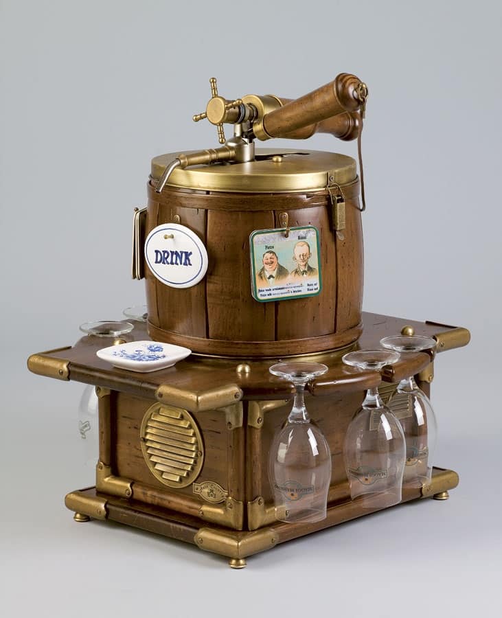 Bar da tavolo per birra, vino, bibite incluso di: impianto di refrigerazione, temperatura minima, 2 centigradi, n°5 bombolette gas co2 (1 bomboletta puo' erogare fino a 5 litri di bevande), n. 6 sottocoppe, n. 6 bicchieri birra, n. 1 contenitore bevande da lt. 5.