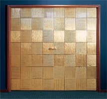Un’altra interessante proposta con struttura in rovere spazzolato e finiture in foglia oro anticata applicata a mano con motivo a "scacchiera"; una lavorazione esclusiva di qualità assoluta.