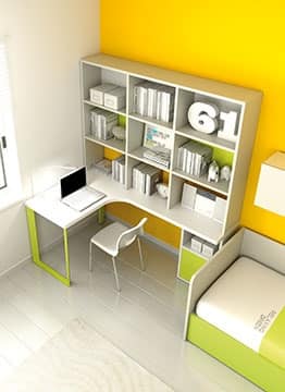 Cameretta componibile con mensole, scrivania e armadio