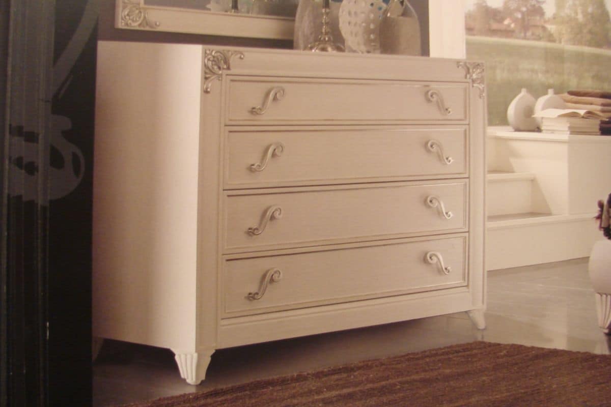 Cassettone laccato bianco perla per camere da letto