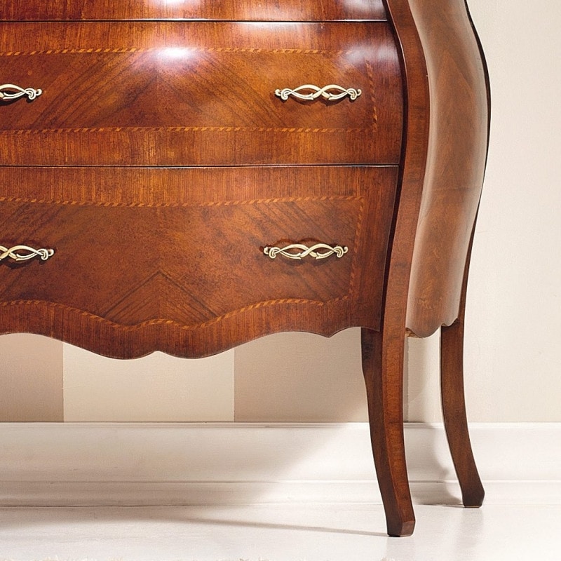Richiedi prezzi Prodotti similiComò bombato con tre cassetti, arricchito da un lavoro di ebanisteria di alto livello realizzato utilizzando filettature ornate da fasce traversali e legno di noce lavorato a spina di pesce. Le eleganti maniglie arrichiscono ulteriormente il mobile. Opere uniche realizzate con tecniche antiche che trasmettono la maestria dal passato ai nostri giorni.