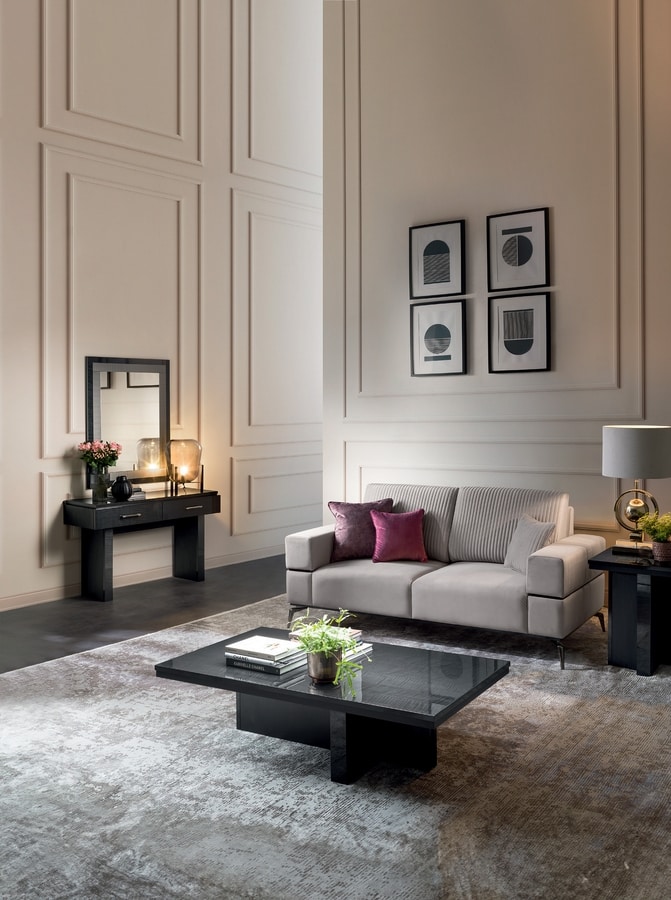 Richiedi prezzi Prodotti similiLa collezione Meridiana è arricchita da complementi come consolle e tavolini che impreziosiscono ulteriormente la zona living conferendo profondità e carattere all’ambiente.