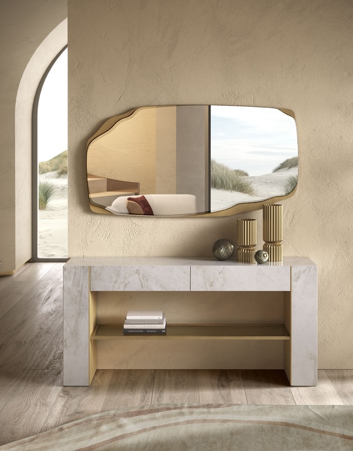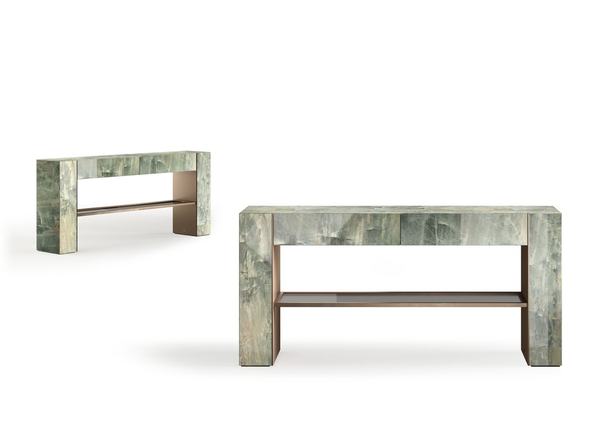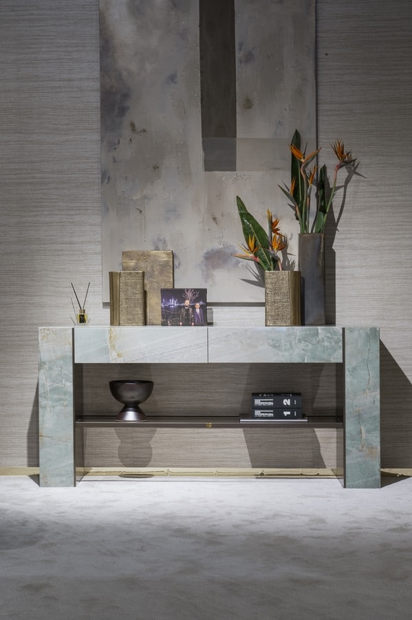 Consolle con geometrie pure e materiali raffinati