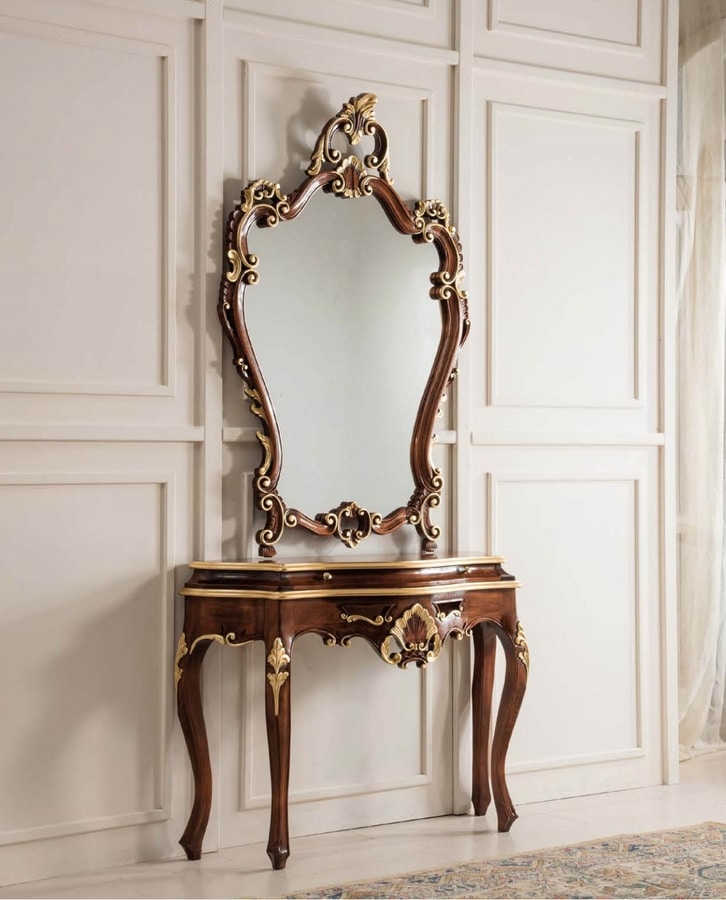 Consolle Venezia intagliata. Disponibile nella finitura laccata, o con dettagli foglia oro.