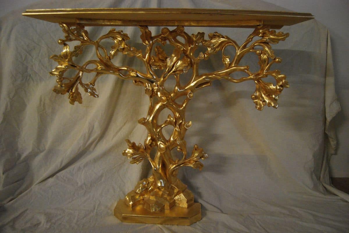 Consolle a forma di albero, intagliata a mano, dorata