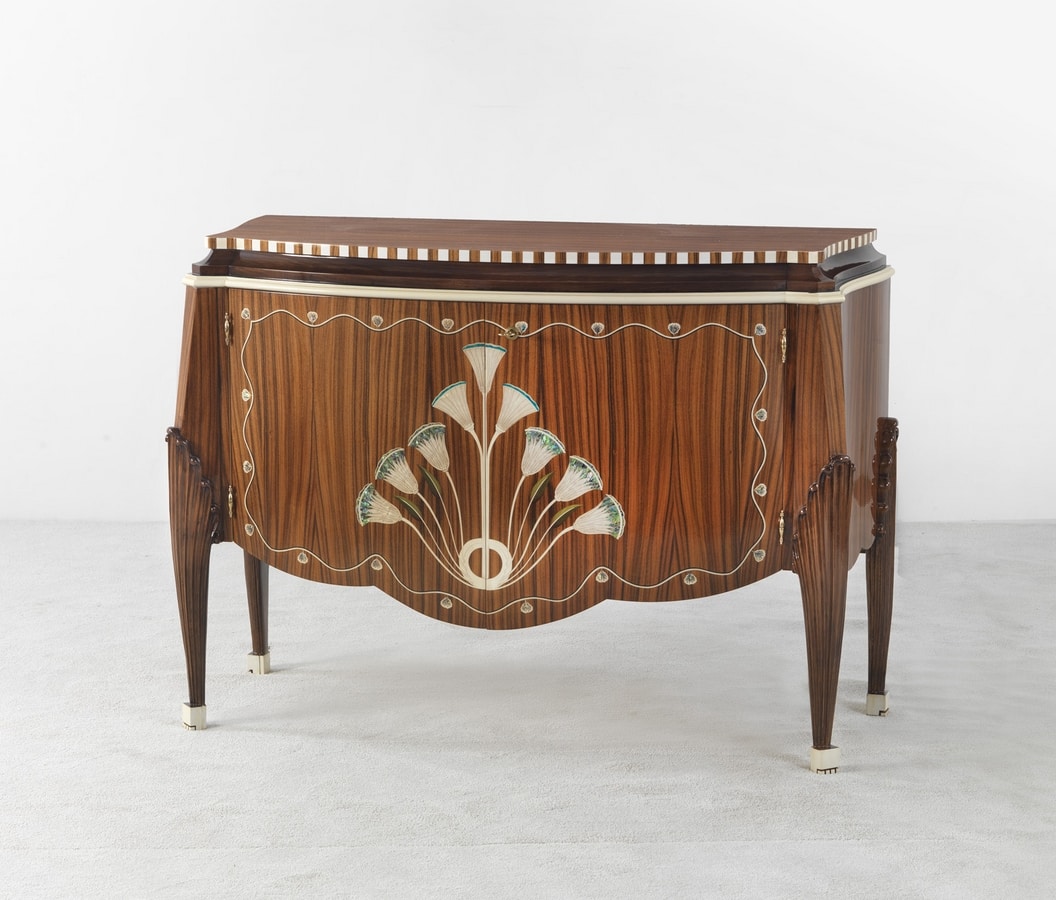 Mobile in palissandro con gambe intagliate, intarsi in madreperla.