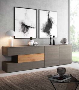Credenza a 4 ante, in legno naturale, con fianchi laccati