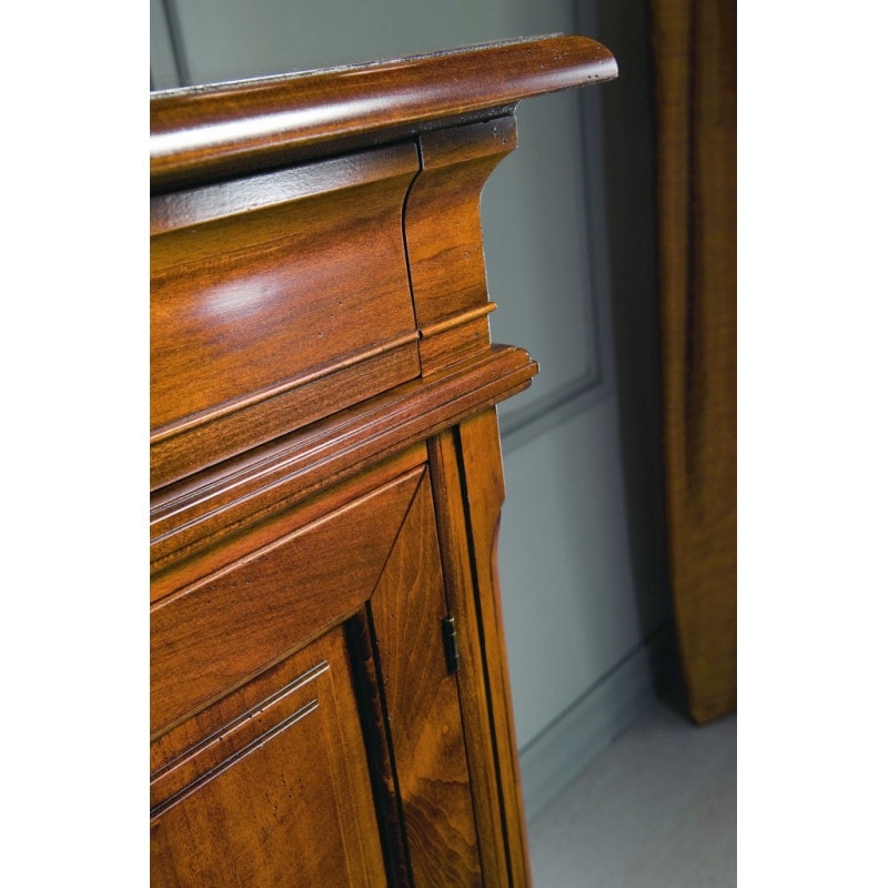Richiedi prezzi Prodotti similiCredenza con due ante e tre cassetti in legno, perfetta per un arredamento classico e tradizionale. Ante con pannello liscio. Soluzioni estetiche tradizionali si fondono con la creatività artigianale per dare vita ad un nuovo modo di arredare. Le proporzioni artigianali si fondono con lavorazioni e dettagli tradizionali, per creare un mobile destinato a durare per anni.