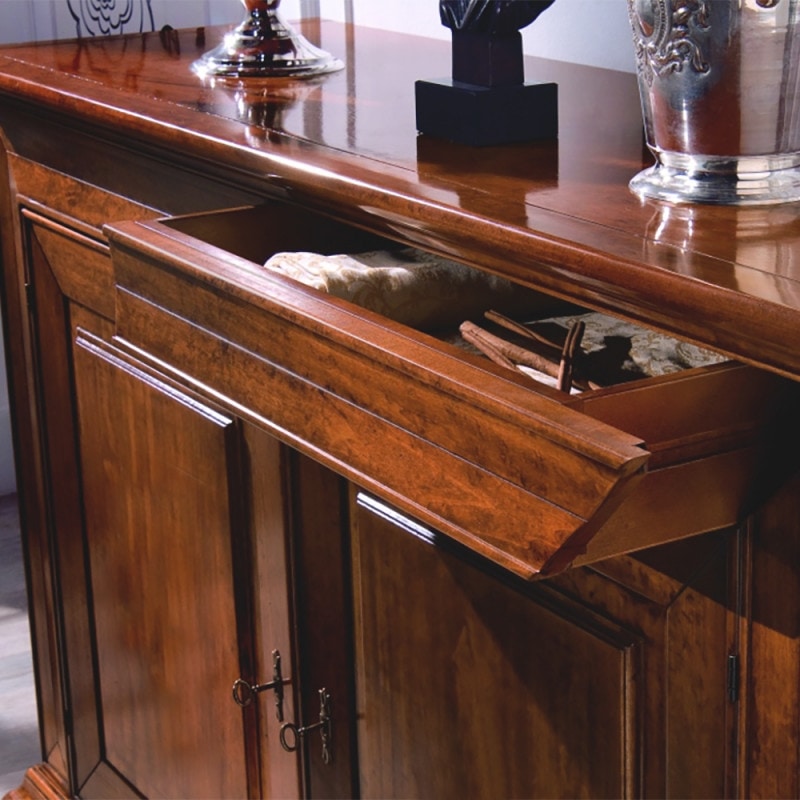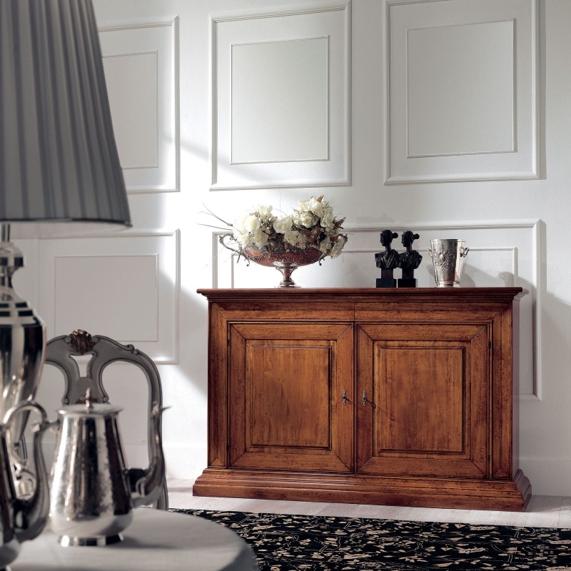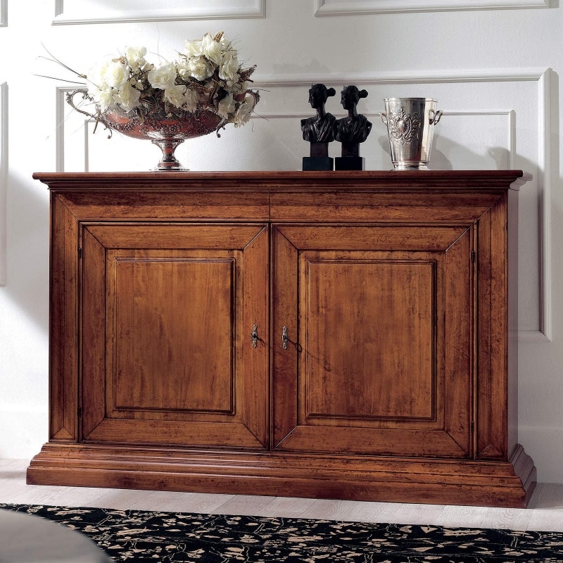 Richiedi prezzi Prodotti similiCredenza con due ante e due cassetti in legno, perfetta per un arredamento classico e tradizionale. Ante con pannello liscio in legno massello. Soluzioni estetiche tradizionali si fondono con la creatività artigianale per dare vita ad un nuovo modo di arredare. Le proporzioni artigianali si fondono con lavorazioni e dettagli tradizionali, per creare un mobile destinato a durare per anni.