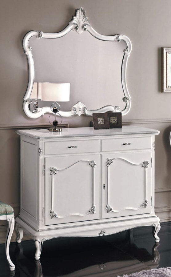 Credenza Art Deco a 2 porte con finitura laccata bianca.