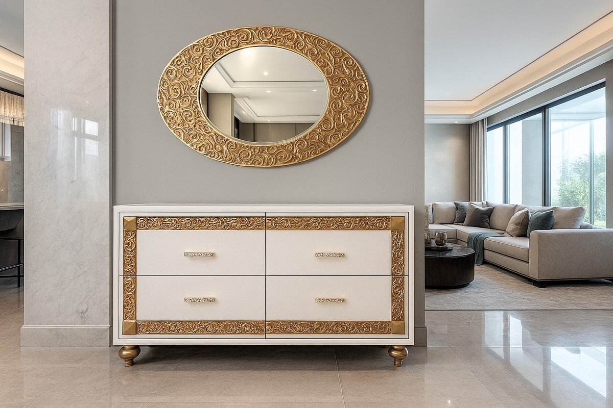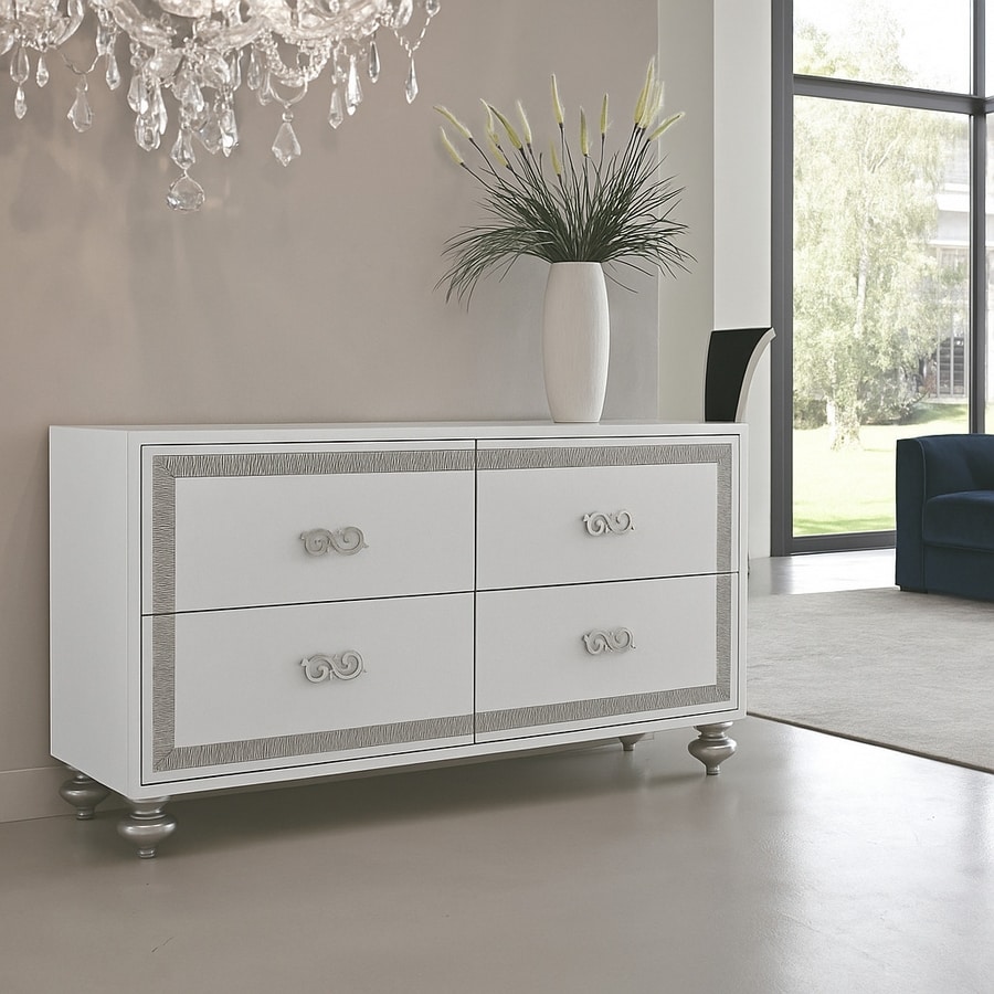 Richiedi prezzi Prodotti similiLa credenza art. 544 è un arredo in stile contemporaneo che unisce eleganza e funzionalità. La sua finitura bianco madreperla è arricchita da inserti e intagli decorativi disponibili in diverse varianti: oro, argento, argento meccato e argento ossido, per offrire soluzioni estetiche versatili e raffinate. Realizzata con struttura in legno listellare e cassetti in multistrato, la credenza garantisce solidità e durata nel tempo. I cassetti sono inoltre dotati di guide a chiusura soft-close, per il massimo comfort nell’uso quotidiano. Completamente personalizzabile in colori, finiture e decori, la credenza art. 544 si adatta perfettamente a living moderni, ambienti di rappresentanza e spazi che richiedono un tocco di stile esclusivo.