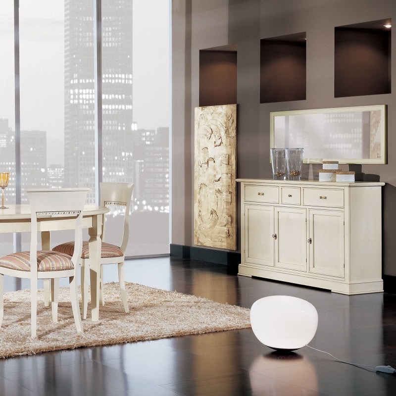 Credenza tre ante tre cassetti di forma semplice e proporzioni eleganti. Cornici delle ante in legno massello.