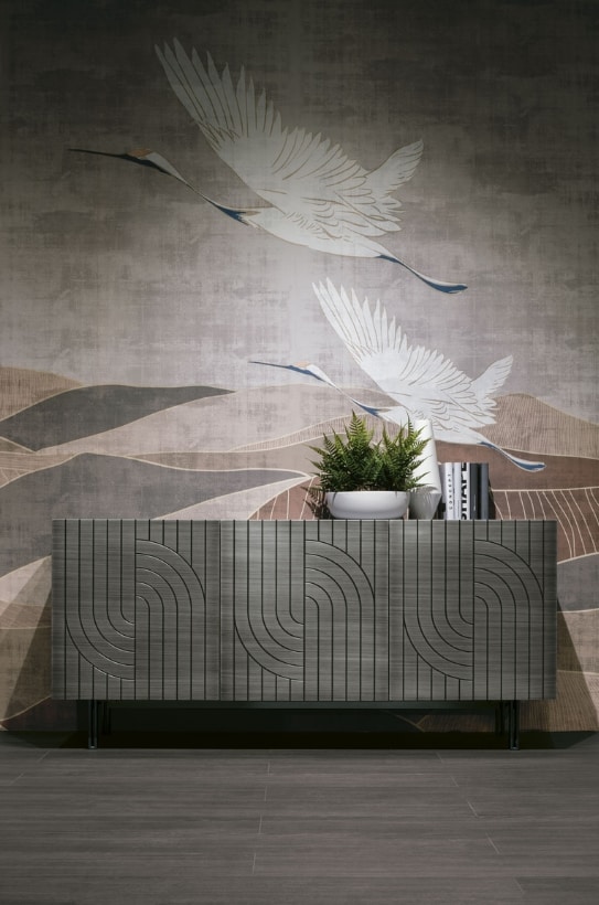 Calliope è una madia che fonde maestria artigianale e design contemporaneo. Le ante pantografate, con incisioni ispirate all’eleganza dell’antica Grecia, creano un raffinato contrasto con la spazzolatura orizzontale della finitura laccata, conferendo al mobile un equilibrio perfetto tra forza visiva e raffinatezza. Un pezzo unico che arricchisce ogni ambiente con stile e sofisticatezza, trasformando lo spazio living in un luogo elegante e armonioso.