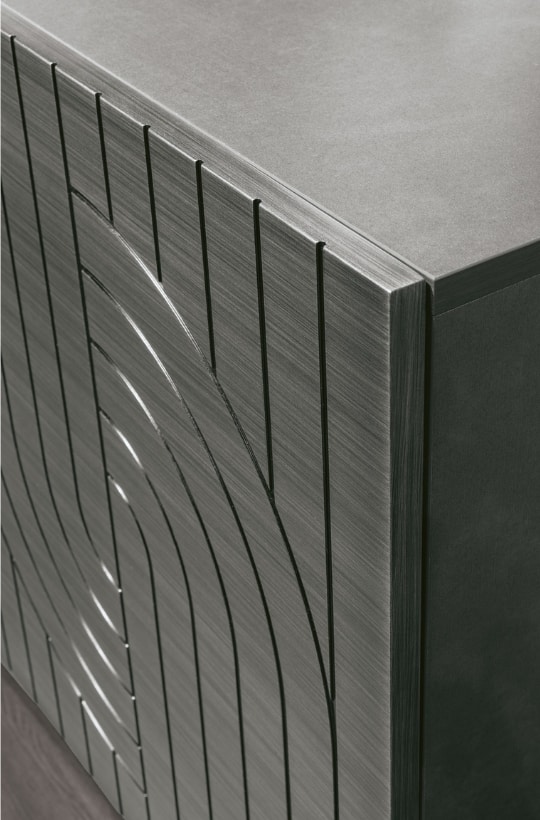 Calliope è una madia che fonde maestria artigianale e design contemporaneo. Le ante pantografate, con incisioni ispirate all’eleganza dell’antica Grecia, creano un raffinato contrasto con la spazzolatura orizzontale della finitura laccata, conferendo al mobile un equilibrio perfetto tra forza visiva e raffinatezza. Un pezzo unico che arricchisce ogni ambiente con stile e sofisticatezza, trasformando lo spazio living in un luogo elegante e armonioso.