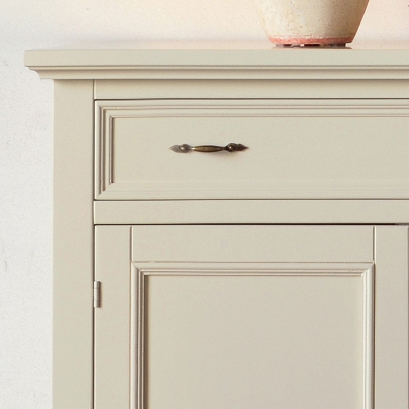 Richiedi prezzi Prodotti similiCredenza shabby chic con 3 ante e 2 cassetti. Ante con serratura e ripiano interno. I piedini a sciabola e la fascia sagomata danno un tocco romantico e raffinato, sono perfetti per chi cerca uno stile shabby chic di classe.