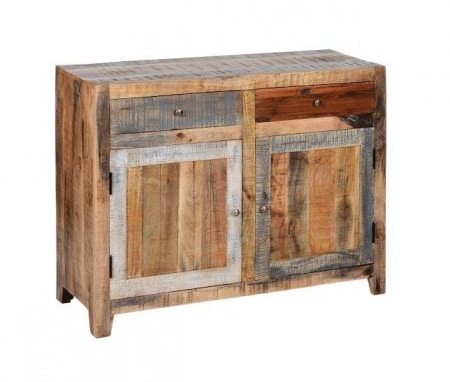 Credenza Brest dotata di cassetti e ante. Il mobile è una credenza particolare che prende corpo da legno massello riciclato. Quello in oggetto è un complemento d'arredo molto affascinate, che emerge per la sua varietà di colori, abbinabile in molti locali zona mare, pianura e montagna.