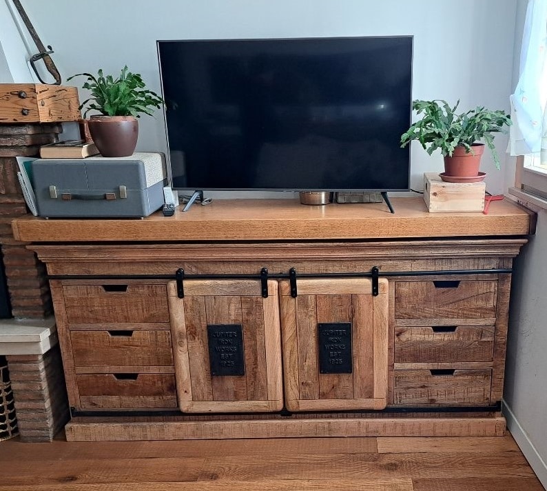Linea Newport, mobili in legno massello acacia e mango con inserti ferro, creano una linea industrial moderna, abbinabile in vari ambienti.