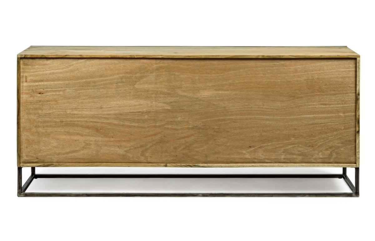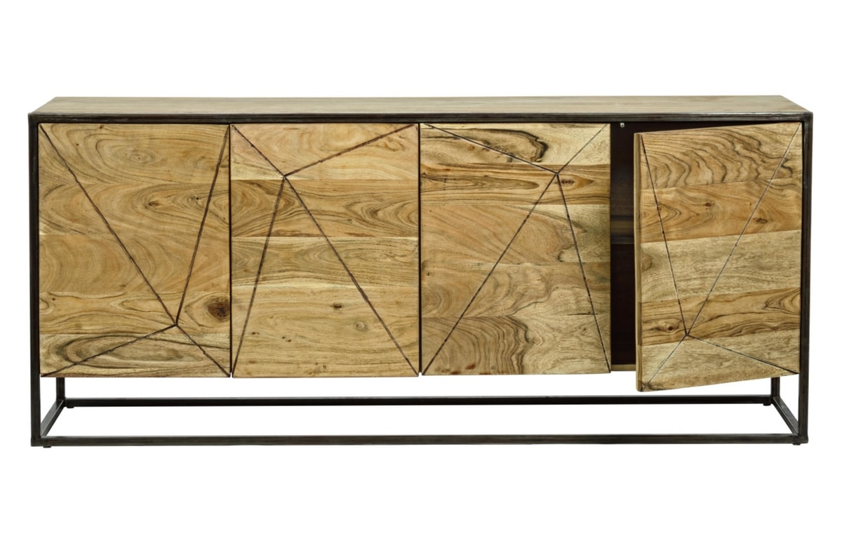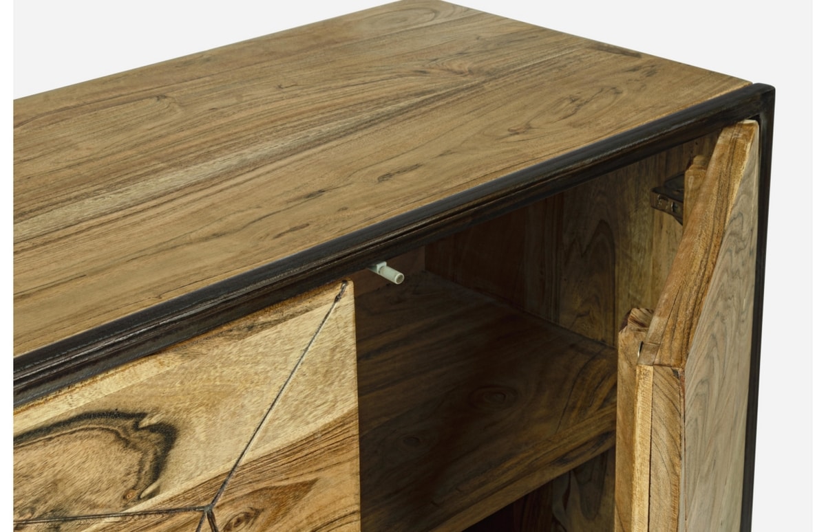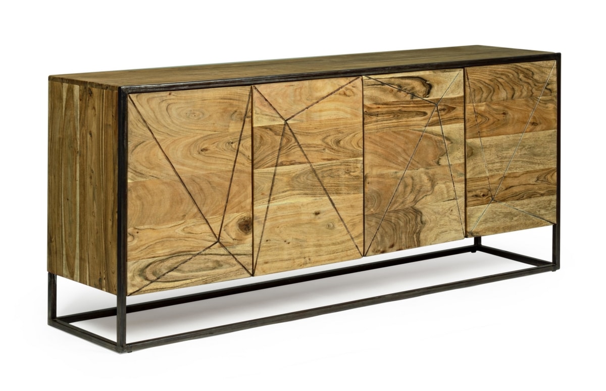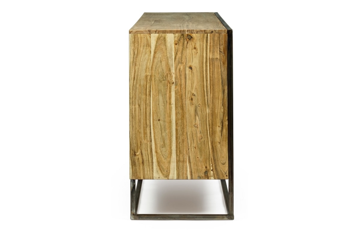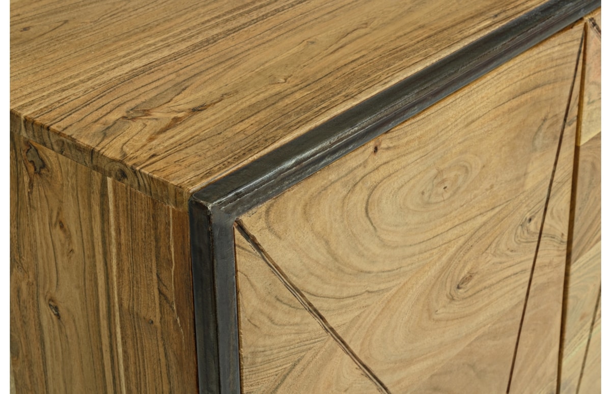 Credenza con struttura in legno d'acacia e acciaio verniciato a polvere epossidica, schienale in compensato. Finitura acrilica protettiva. Maniglie in acciaio.