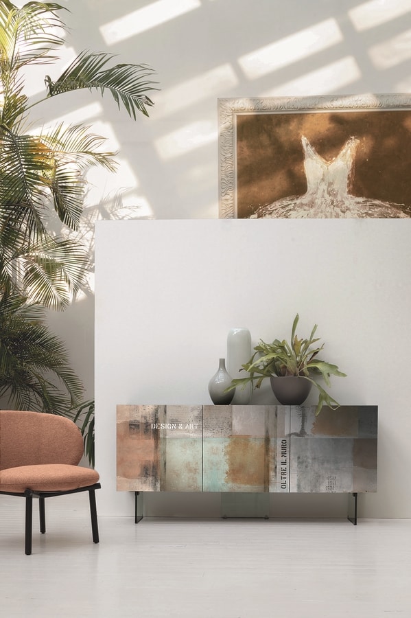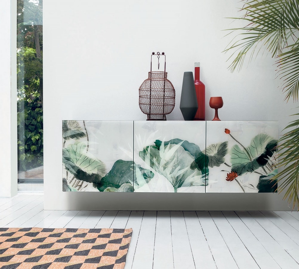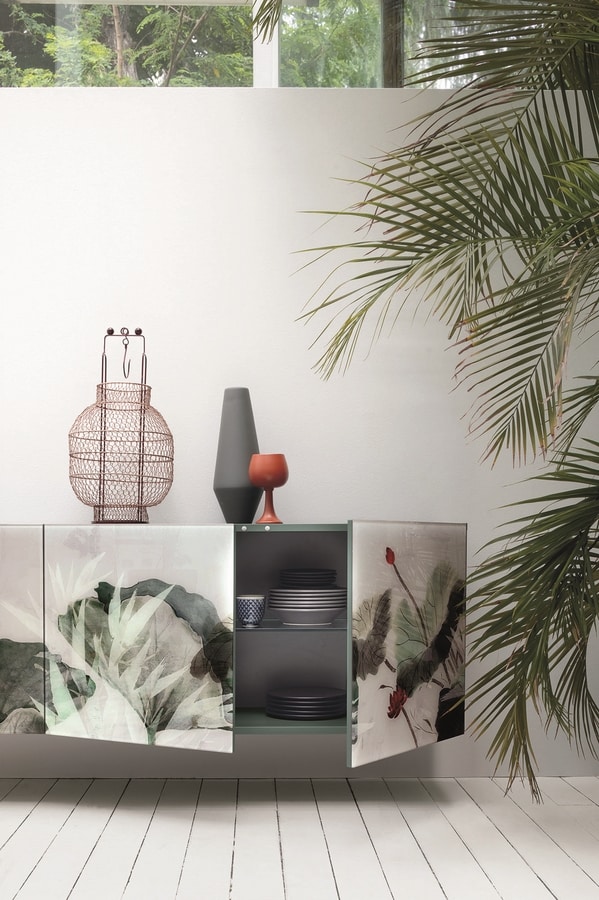 Madia 3 ante, con frontali in vetro con grafica a stampa digitale