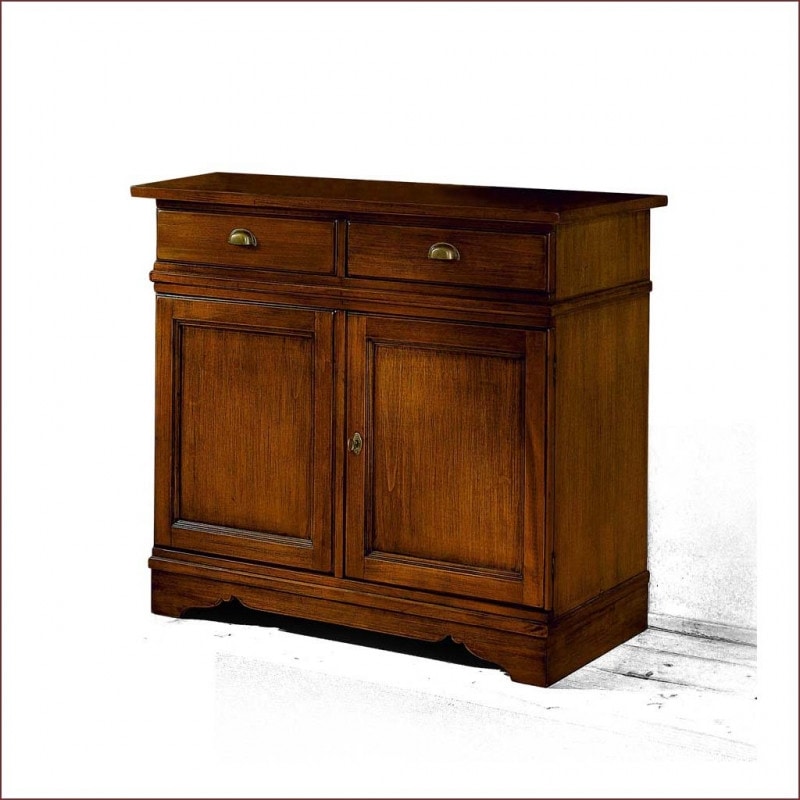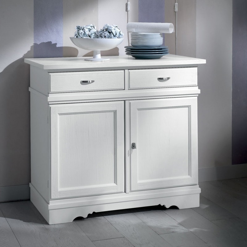 Richiedi prezzi Prodotti similiCredenza con due ante e due cassetti. Sotto al piano sono inseriti due cassetti a battente. Zoccolo finemente sagomato nella parte frontale. Cassetti con fondo diamantato di forte spessore. Questo mobile si caratterizza per la costruzione interamente in legno massello e l’elegante pulizia delle design. Grazie alla pulizia delle sue forme, si può adattare ad ambienti country o di gusto classico. Questo mobile ha le superfici spazzolate per mettere in risalto la venatura del legno massello.
