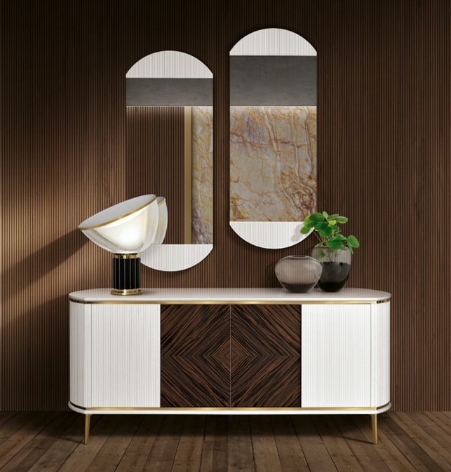 Credenza a 4 porte Millerighe con sistema touch push pull.