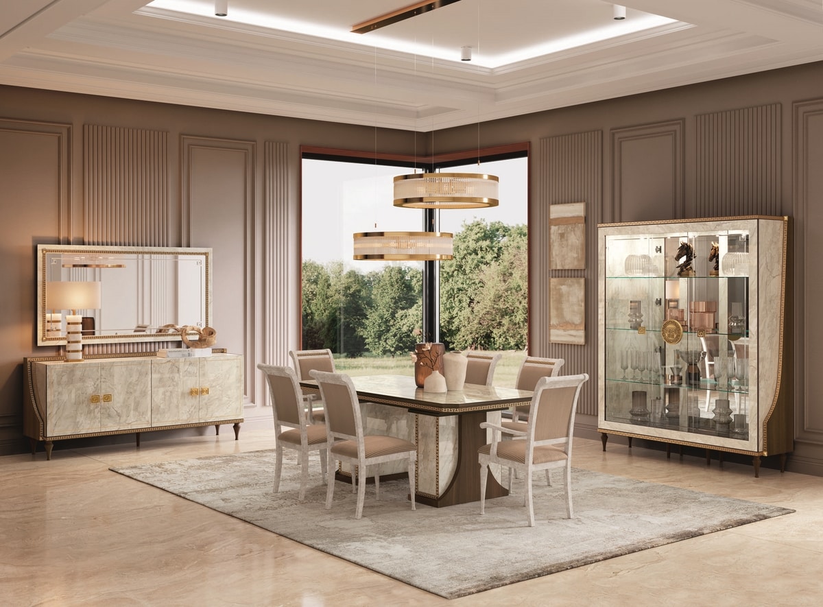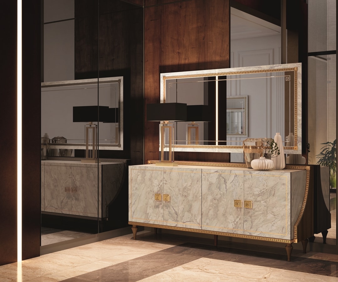 Credenza con greca neoclassica in finitura oro
