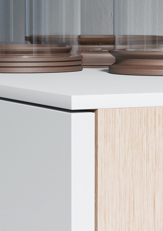 Richiedi prezzi Prodotti similiSistema giorno componibile con piano in legno (rovere o noce), fenix, hpl o ceramica e piedini a scelta (da 5 a 17 cm) in legno o metallo. Ante con apertura push-pull e cassetti con sistema Blumotion ammortizzato. Possibilità di ante e cassetti in fenix o hpl.