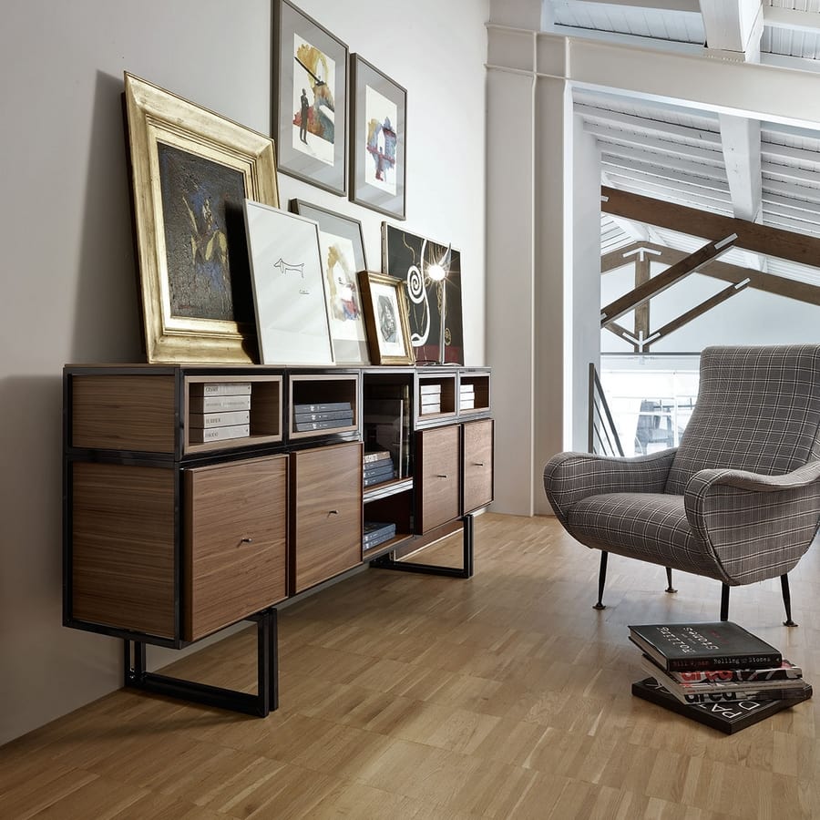 Credenza componibile, in metallo e legno