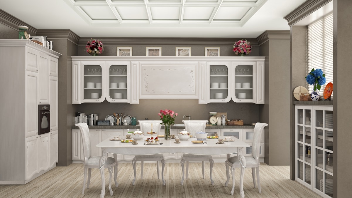Elegante cucina in legno laccato, stile classico