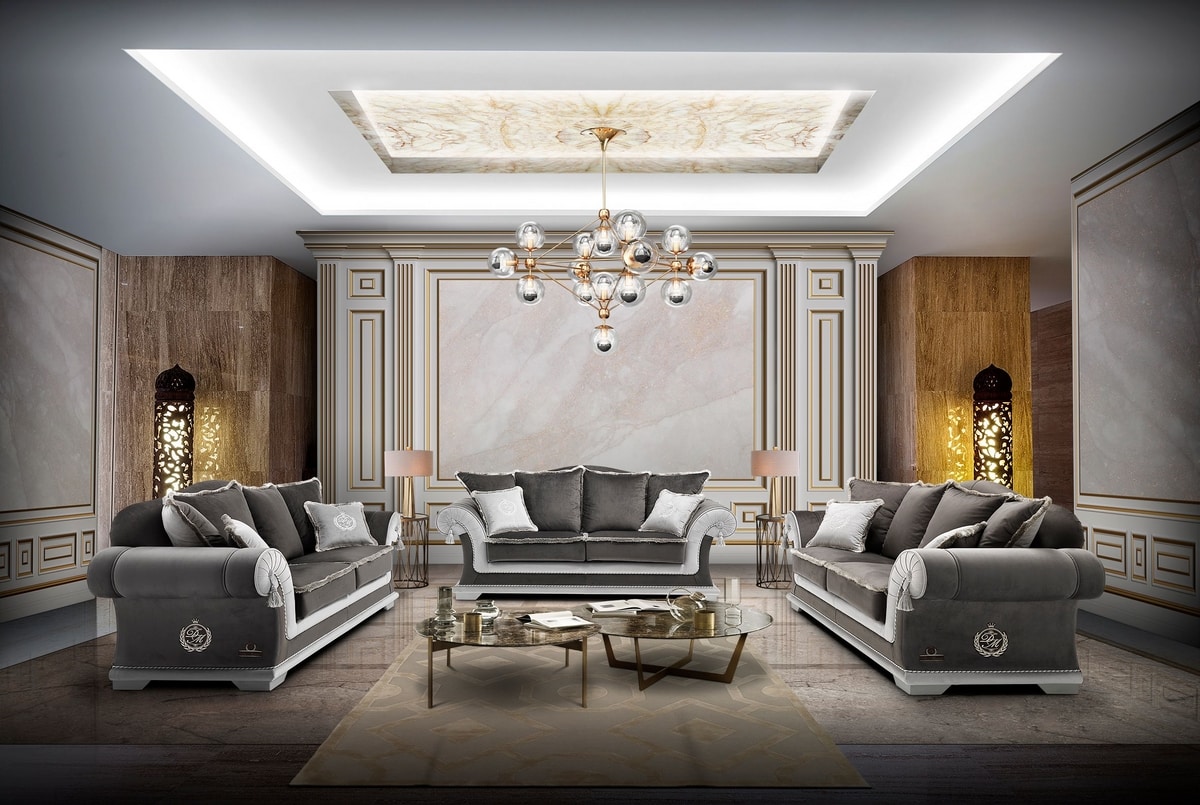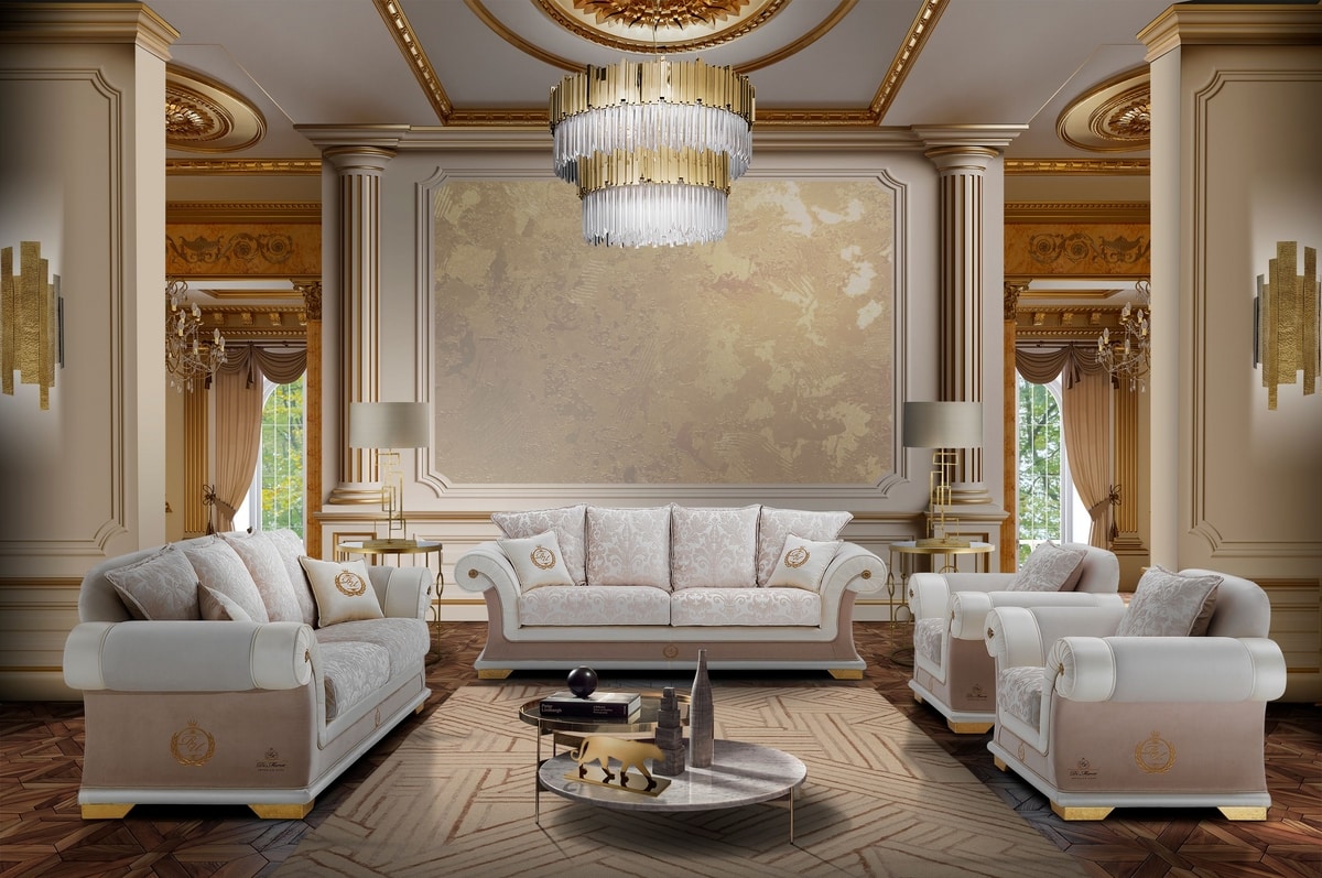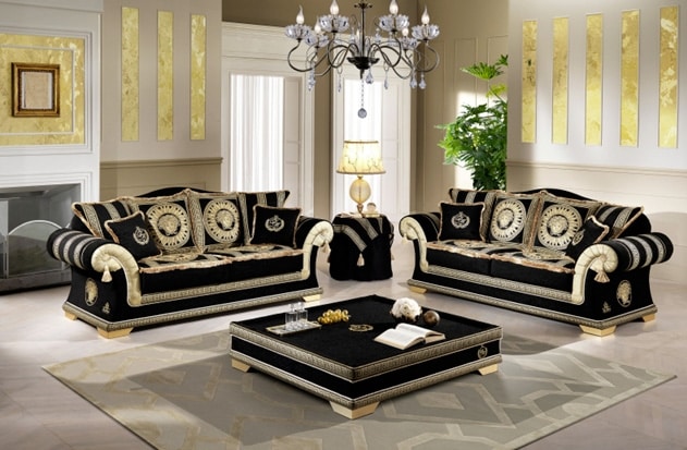 Divano classico rivestito in elegante tessuto