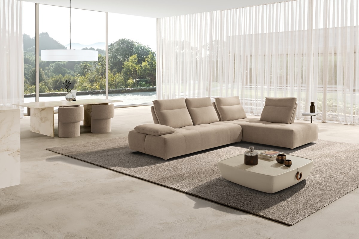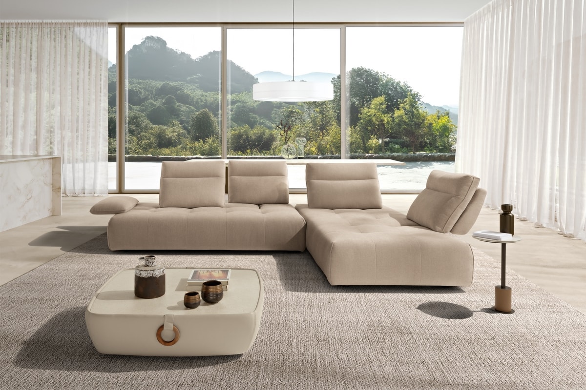 Divano modulare, rivestito in tessuto completamente sfoderabile