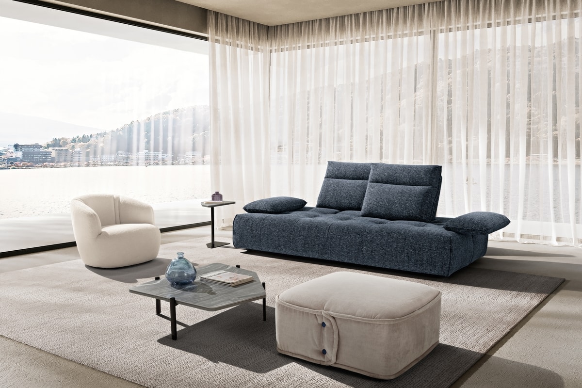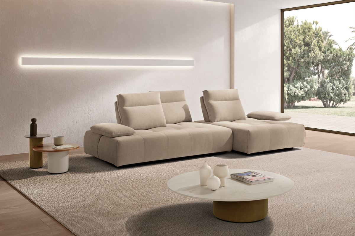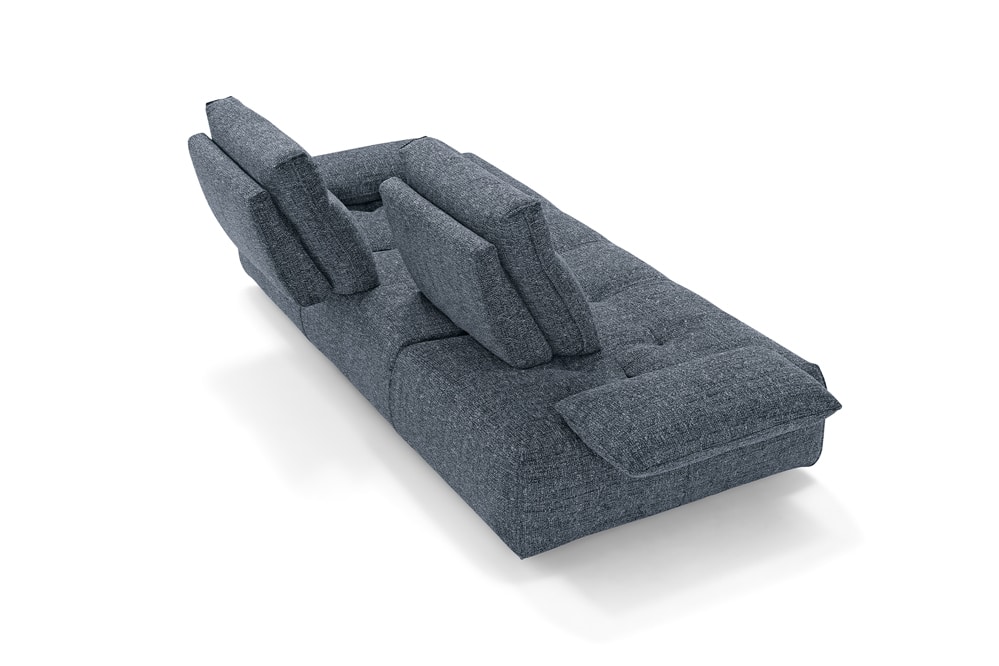 Richiedi prezzi Prodotti similiIdeato per assecondare con dinamismo gli spazi e le esigenze della vita contemporanea, il divano modulare Ella, rivestito in tessuto completamente sfoderabile, è un modello che esprime personalità, versatilità e massima libertà compositiva. Partendo da un singolo modulo monoblocco, questo divano pụ essere infatti declinato in illimitate configurazioni, semplicemente giustapponendo ulteriori moduli rettangolari – chaise longue o penisole terminali – e pouf quadrati. Traslanti orizzontalmente sono sia i braccioli che le spalliere: questo movimento consente di variare la profondità della seduta e di avere un divano in continua evoluzione e mai uguale. La cura sartoriale delle creazioni Maxdivani si esprime infine nella lavorazione trapuntata della seduta e nella cucitura orizzontale presente sullo schienale, a definire un comodo poggiatesta nella parte superiore.