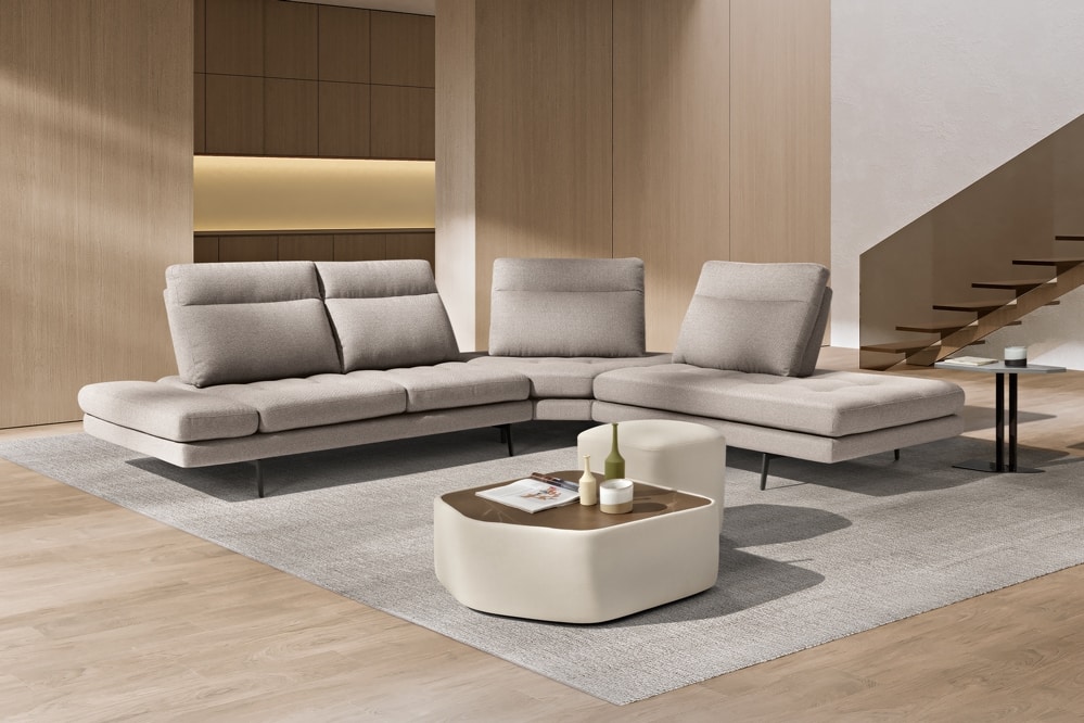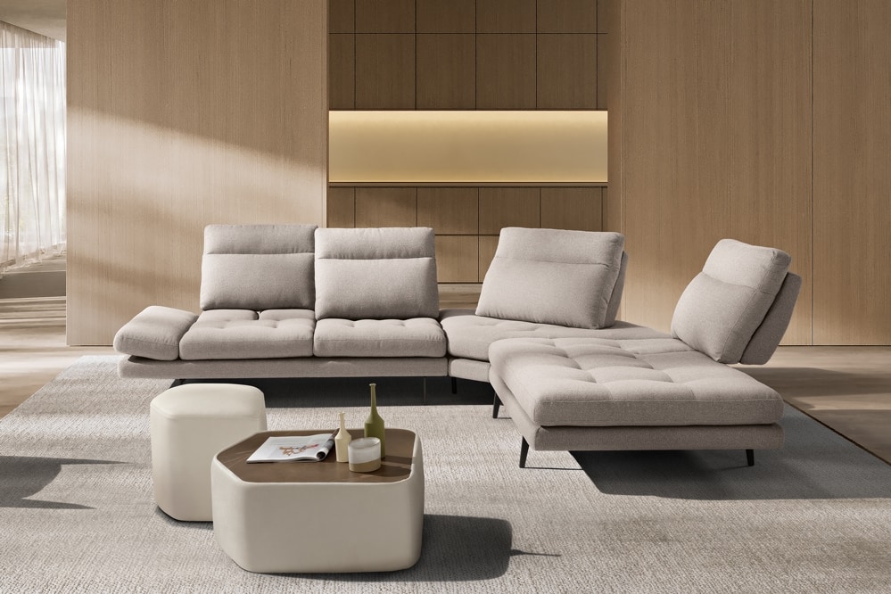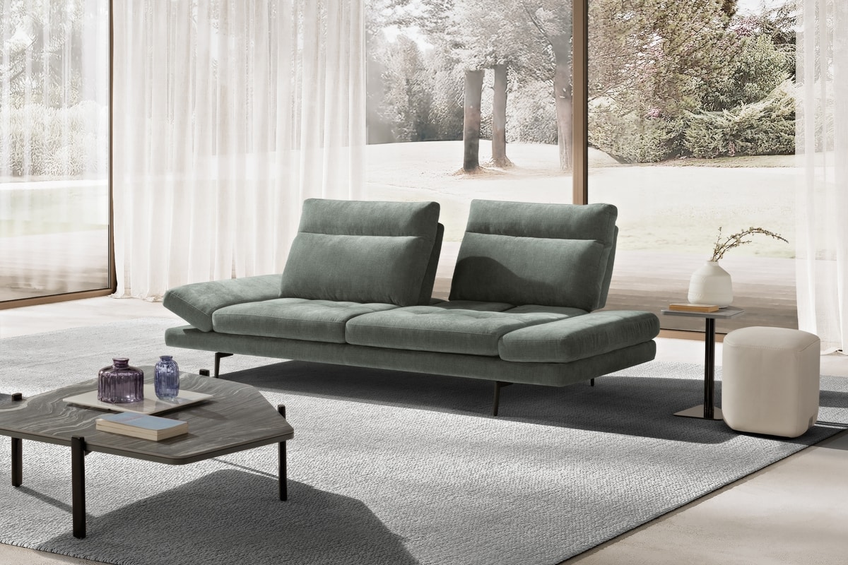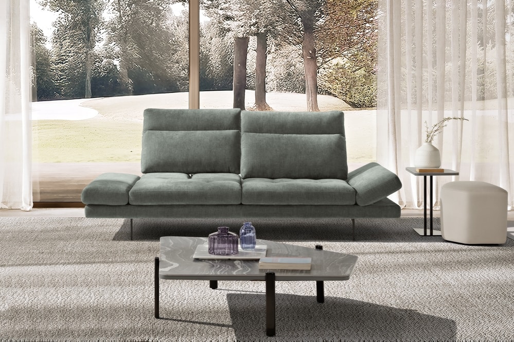 Richiedi prezzi Prodotti similiIl design essenziale e leggero consente al divano tre posti Enea di essere armonizzabile con qualsiasi stile di arredo, mentre la vasta possibilità di composizioni lo rende compatibile con ogni tipo di spazio, dall’open living ad ambienti più ridotti. Disponibile con rivestimento parzialmente sfoderabile in tessuto o in pelle, questo modello, può essere infatti declinato in molteplici soluzioni, prevedendo ad esempio l’inserimento di una chaise longue, di un pouf terminale o di un modulo di raccordo per ottenere una composizione angolare. Le alte e comode spalliere traslanti permettono di aumentare la profondità di seduta, mentre il bracciolo reclinabile può essere sollevato o tenuto in posizione orizzontale, conferendo così respiro e ariosità all’intera composizione. Espressione di sartorialità sono infine la lavorazione trapuntata della seduta e le cuciture orizzontali presenti sulle spalliere, che vanno a definire confortevoli poggiatesta nella parte superiore.