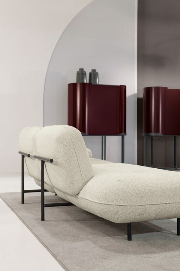 È un sistema di divani componibili e tavolini da fumo con che, come delle nuvole si appoggiano su una struttura fatta da "T" di acciaio inox posizionate in diversi modi per creare la componibilità.