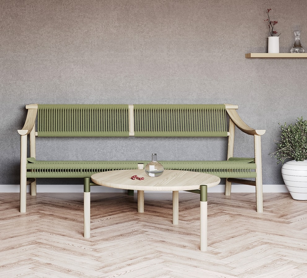 Divanetto in legno, in corda nautica