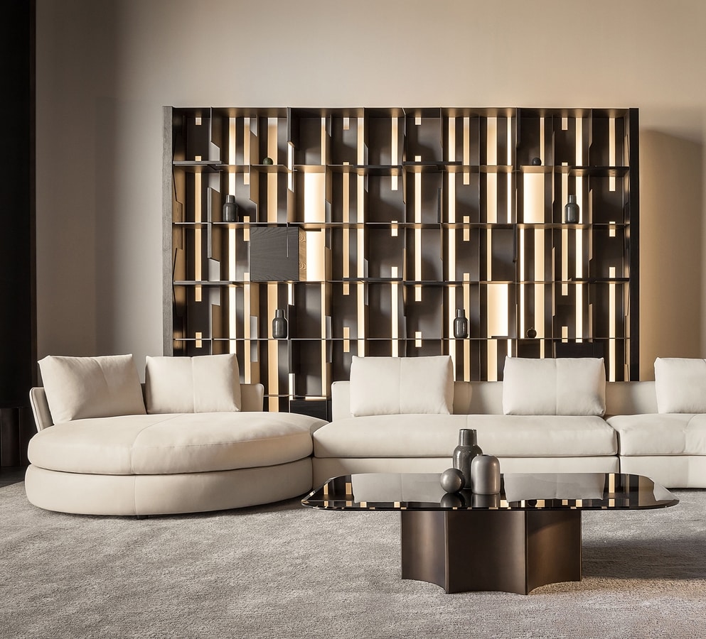 Richiedi prezzi Prodotti similiIl divano Oasi componibile, prevede moduli differenti con 2/3 sedute ognuno, la struttura interna in legno di faggio e multistrato di pioppo, con inserti in multistrato ed il molleggio è garantito da cinghia elastiche indeformabili. Il rivestimento strutturale è in poliuretano espanso a quote differenziate ad alta densità e lo strato superiore ad alta componente elastica, la cuscinatura è a densità differenziata indeformabile in piuma e falda sintetica. Una piastra in metallo bronzato, tagliata a laser, contiene il divano decorando e creando un punto luce in questo imbottito. La Chaise lonuge ha lo schienale piu’ lungo che va a completare e includere lo schienale del pouf. Il Cuscino strutturale ha dimensioni di 40x40, ed è previsto con la stessa finitura divano L’angolare ha cuscino strutturale di fronte come il modulo centrale e un cuscino sull’angolo, ridimensionato Isola circolare rotonda, ha una spalliera circolare con struttura metallica rivestita in pelle con due cuscini strutturali e due proporzionati. Mentre il modulo centrale è lineare. Questo divano è componibile, quindi si possono creare dimensioni differenti a seconda dei moduli scelti. A concludere abbiamo il pouf in pelle alla stessa altezza del divano, utilizzato anche con coffee table o come seduta.