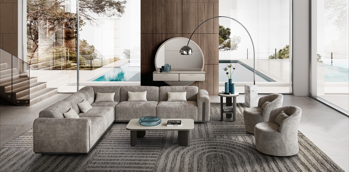 Divano componibile, dalle forme morbide