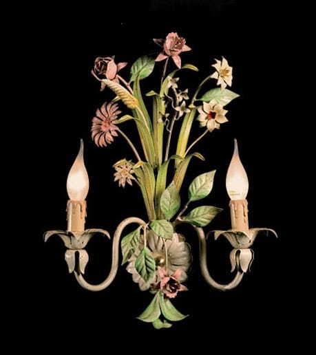 Lampada da parete con 2 luci, realizzata a mano in ferro battuto decorato. A forma di mazzo di fiori.