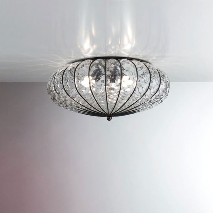Plafoniera lavorata a mano in vetro soffiato con le tecniche dei vecchi maestri vetrai di murano